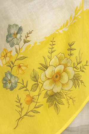Elegant White & Yellow Printed Linen Saree – Floral Print, Lightweight