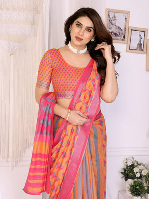 Discover timeless beauty with this saree from our LILEN saree collection. Woven from premium handloom linen cotton, it offers a soft, breathable texture and a graceful fall. The saree is adorned with elegant digital prints and finished with a rich zari border, giving it a perfect balance of tradition and modern design. An attached blouse piece completes the look, making it ready to wear for any occasion.