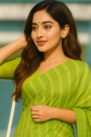 Refresh your everyday wardrobe with this bright and beautiful Lime Green Striped Soft Cotton Saree, designed for women who love comfort with a hint of modern elegance. The soft cotton fabric ensures all-day comfort, allowing the saree to drape naturally without effort. The lime green tone is fresh, youthful, and instantly uplifting, perfect for warm-weather styling or minimal everyday elegance.