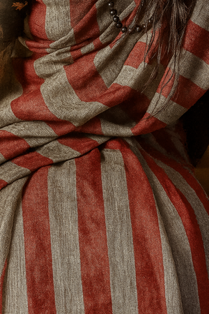 Experience the refined beauty of this handwoven cotton-linen saree featuring bold red and grey vertical stripes. The cotton-linen blend gives it a soft, breathable feel with a graceful structure that drapes effortlessly.