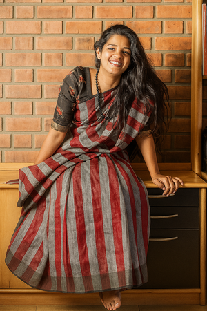 Linen Striped Saree – Red & Grey | Sustainable Everyday Elegance