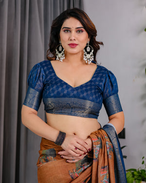 Pure Handloom Linen Saree with Floral Print & Zari Border | Elegant Ethnic Wear for Festive & Casual Styling